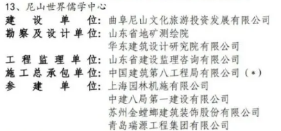 近日,中国施工企业管理协会公示了2022-2023年度第一批国家优质工程奖候选工程名单,曲阜文化建设示范区指挥部推进的尼山世界儒学中心工程入选全省唯一国家优质工程金奖。